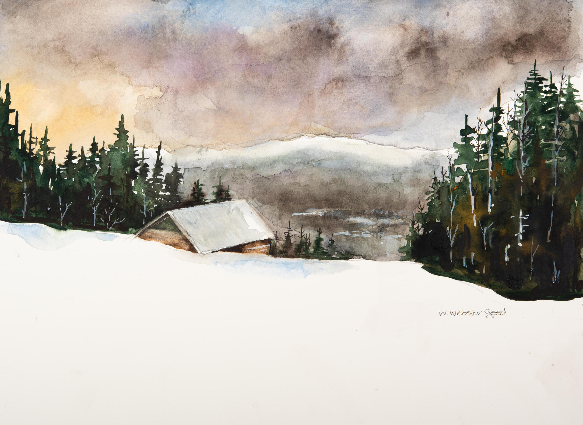 “Bigelow Sunset” is a print of an original watercolor by Wendy Webster Good.